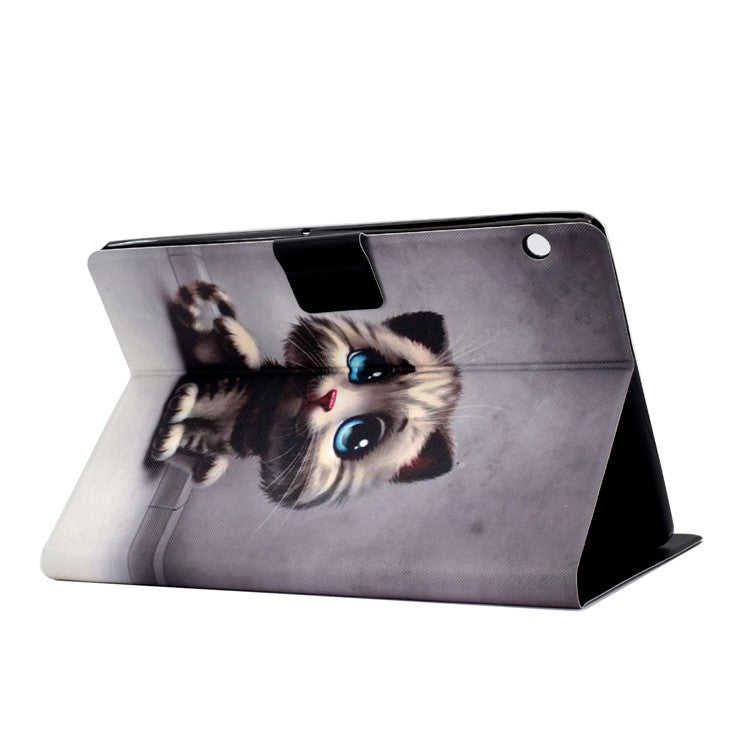 Shock-proof Pattern Printing Card Slot Stand PU Leather Tablet Case for Huawei MediaPad T3 10 - Cat with Blue Eyes