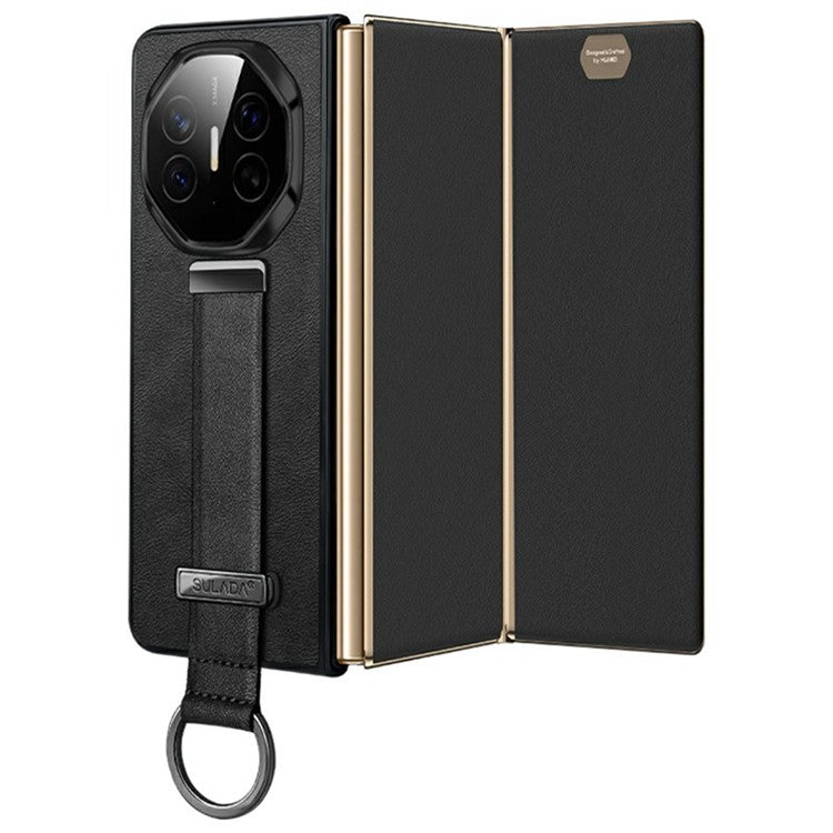 SULADA Fashion Series for Huawei Mate XT Ultimate Case Wristband Kickstand Leather+PC Back Phone Cover - Black