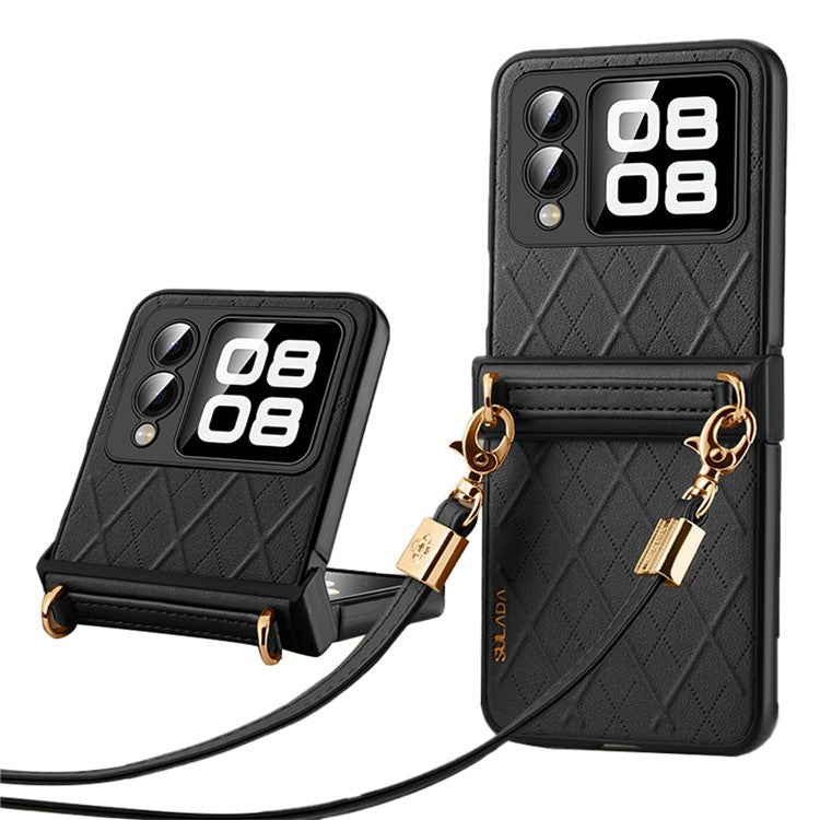 SULADA For Huawei nova Flip 5G Case Rhombus Leather+PC Phone Cover with Shoulder Strap - Black