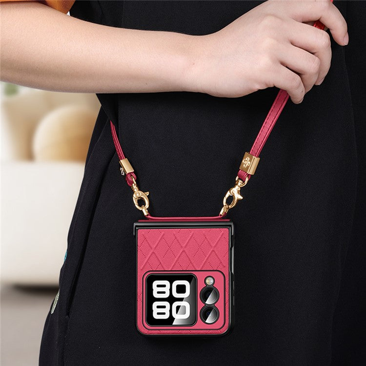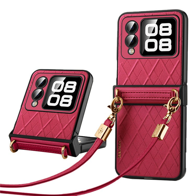 SULADA For Huawei nova Flip 5G Case Rhombus Leather+PC Phone Cover with Shoulder Strap - Red