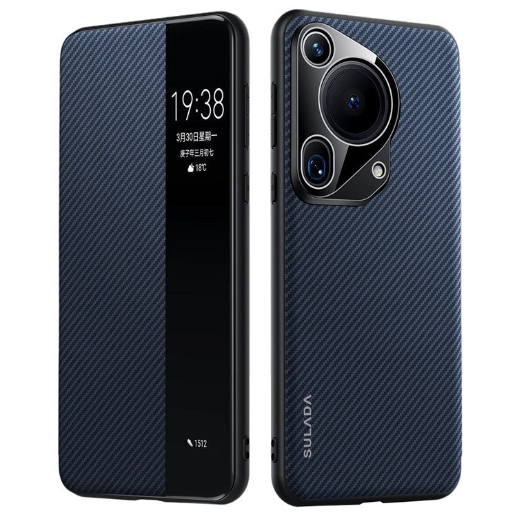 SULADA For Huawei Pura 70 Ultra Case Carbon Fiber Texture Leather Phone Cover Auto Sleep / Wake Up - Blue