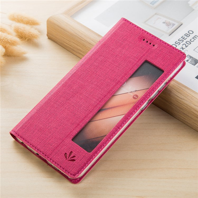 VILI DMX Cross Texture View Window Leather Shell with Stand for Huawei P20 Pro - Rose