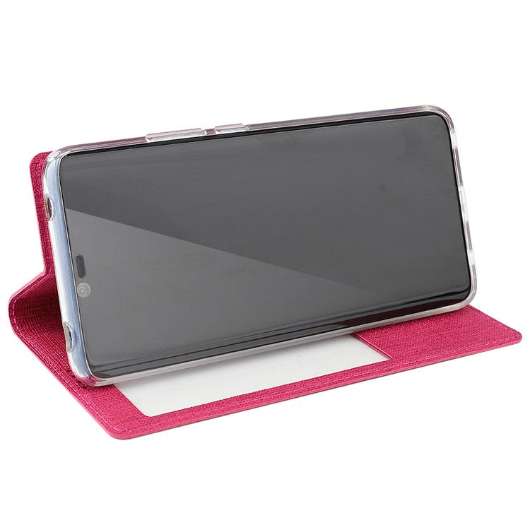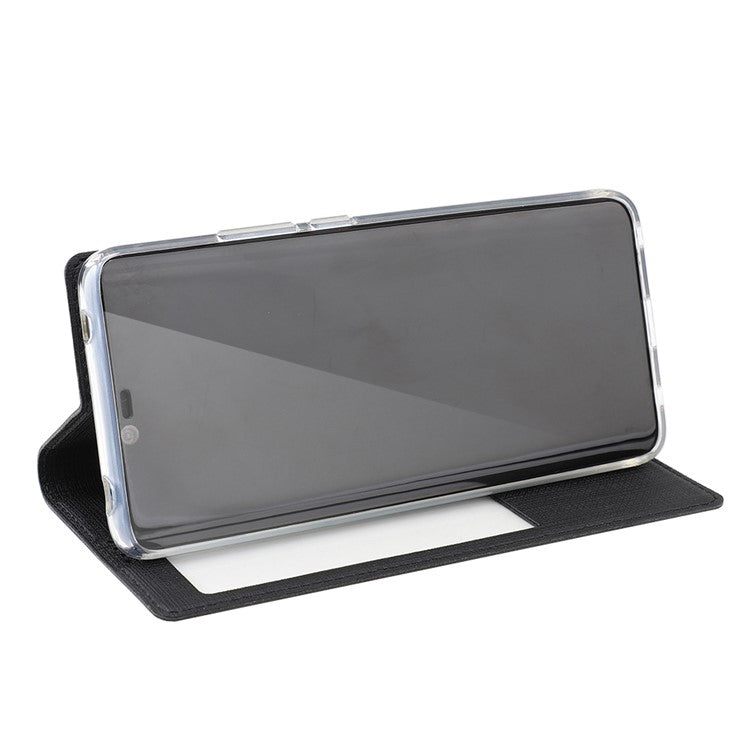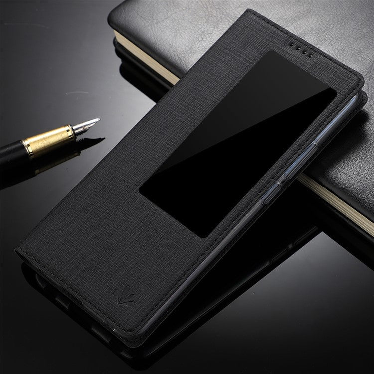 VILI DMX Window View Cross Texture Leather Stand Cover for Huawei Mate 20 Pro - Black