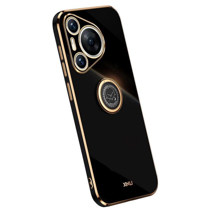 XINLI For Huawei Pura 70 Pro Case Electroplating Kickstand TPU Phone Cover - Black