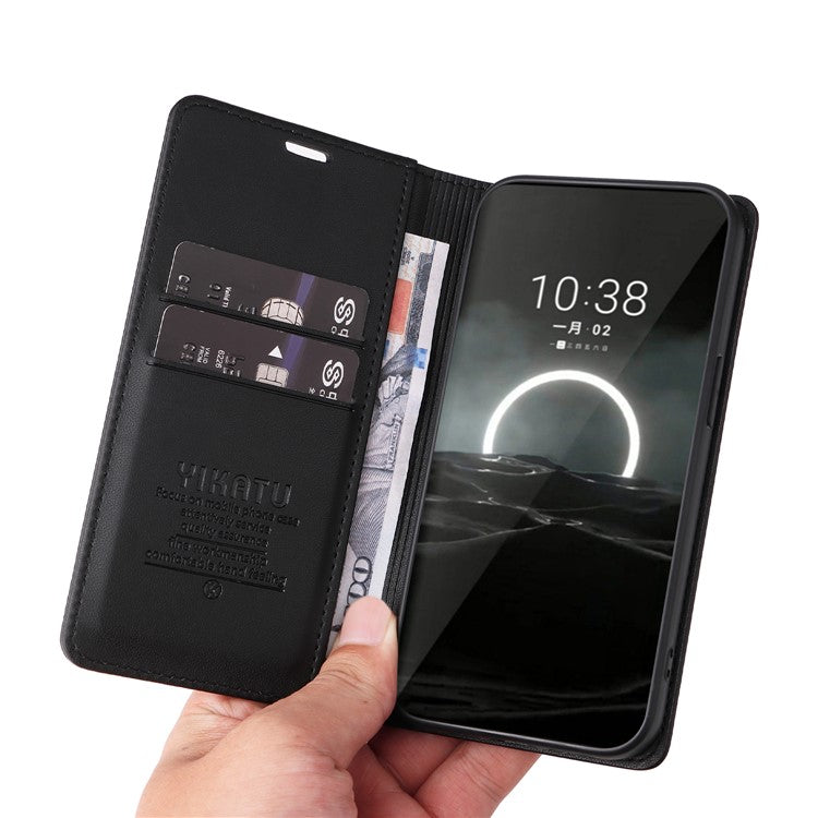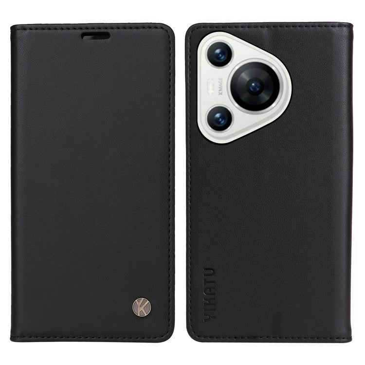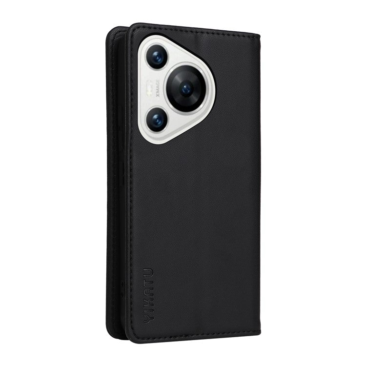 YIKATU YK-001 For Huawei Pura 70 Case Leather Phone Cover Card Slot Stand Strong Magnetic - Black