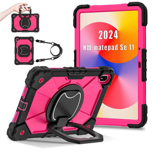 For Huawei MatePad SE 11 Case Kickstand Silicone+PC Tablet Cover with Shoulder Strap - Black / Black
