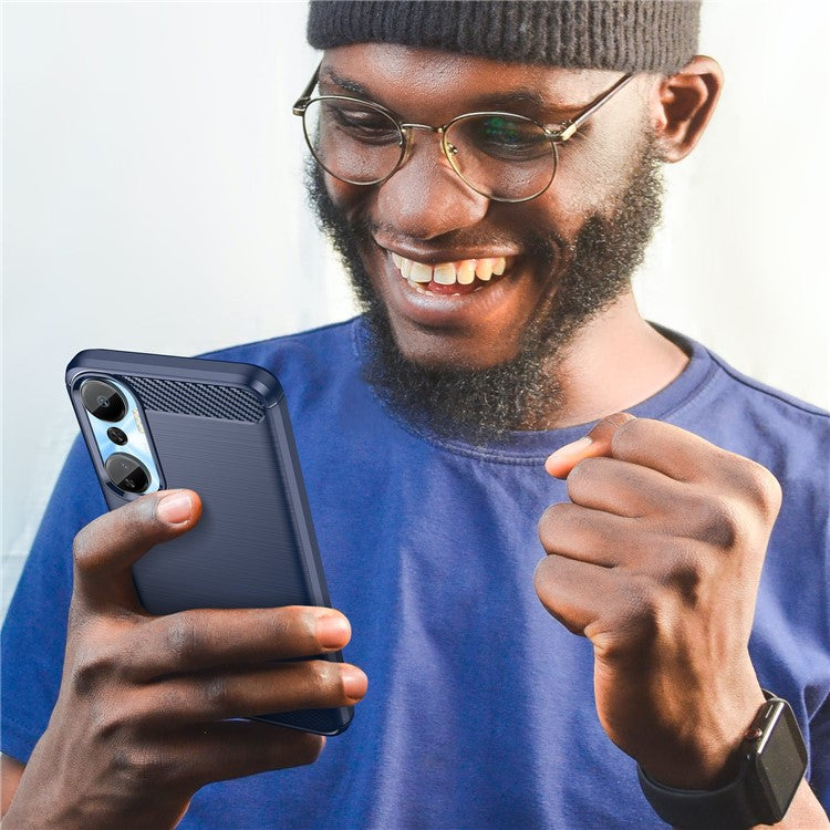For Infinix Hot 20 4G Drop Resistant Carbon Fiber Texture Phone Case Soft TPU Brushed Surface Protective Cover - Blue