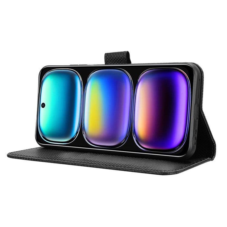 For Infinix Hot 50i 4G X6531 / Smart 9 4G X6532 Case PU Leather Diamond Texture Wallet Phone Cover - Black