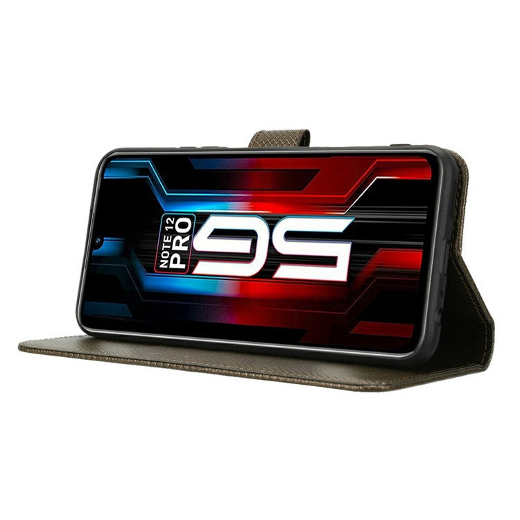 For Infinix Note 12 5G / Note 12 Pro 5G / X671 / X671B Diamond Texture Case Stand Wallet Shockproof Phone Cover with Strap - Brown