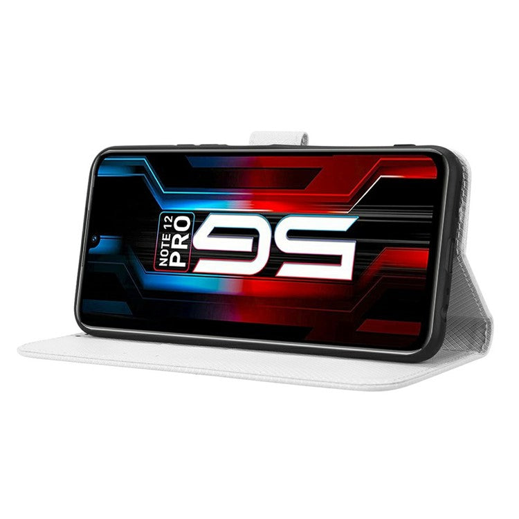 For Infinix Note 12 5G / Note 12 Pro 5G / X671 / X671B Diamond Texture Case Stand Wallet Shockproof Phone Cover with Strap - White