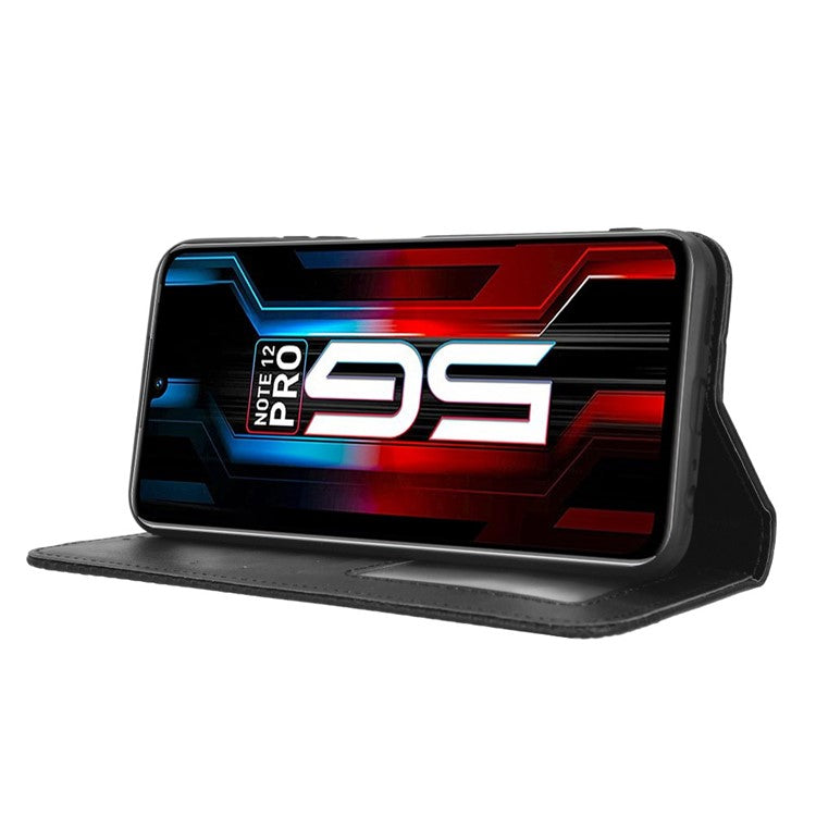 For Infinix Note 12 5G X671 / Note 12 Pro 5G X671B Retro Wallet Case PU Leather Imprinted Pattern Stand Cover - Black