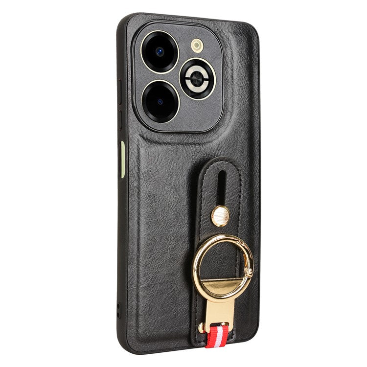 For Infinix Smart 8 Plus / 8 Pro 4G Phone Case Wristband Kickstand Leather+PC+TPU Cover - Black