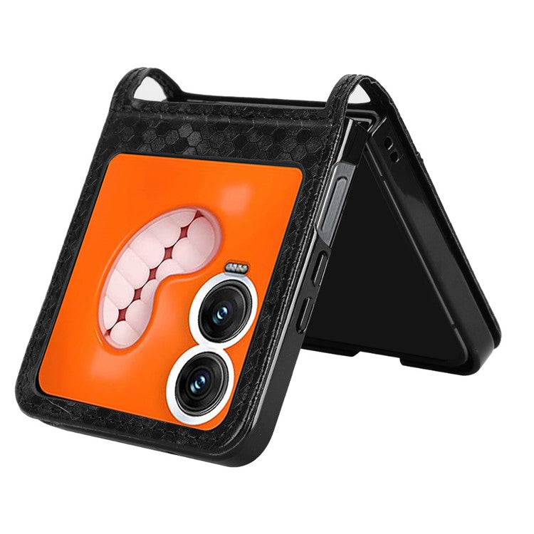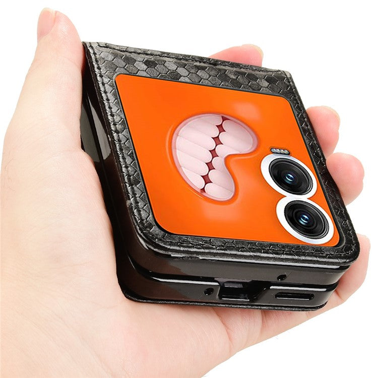 For Infinix Zero Flip 5G Case Dot Pattern Imprint PU Leather Coated PC Phone Cover with Card Holder - Black