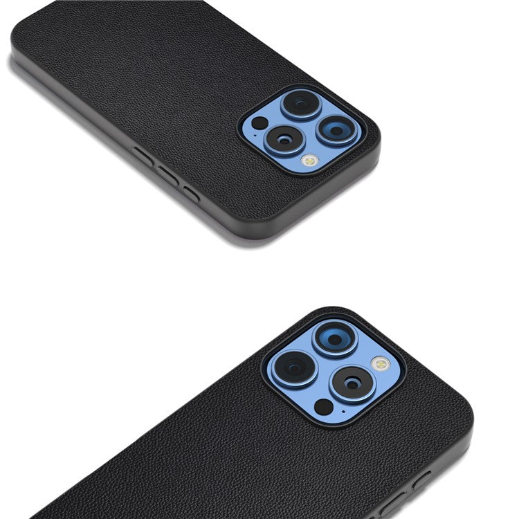 ABEEL For iPhone 16 Pro Case Genuine Cow Leather PC Phone Cover - Black