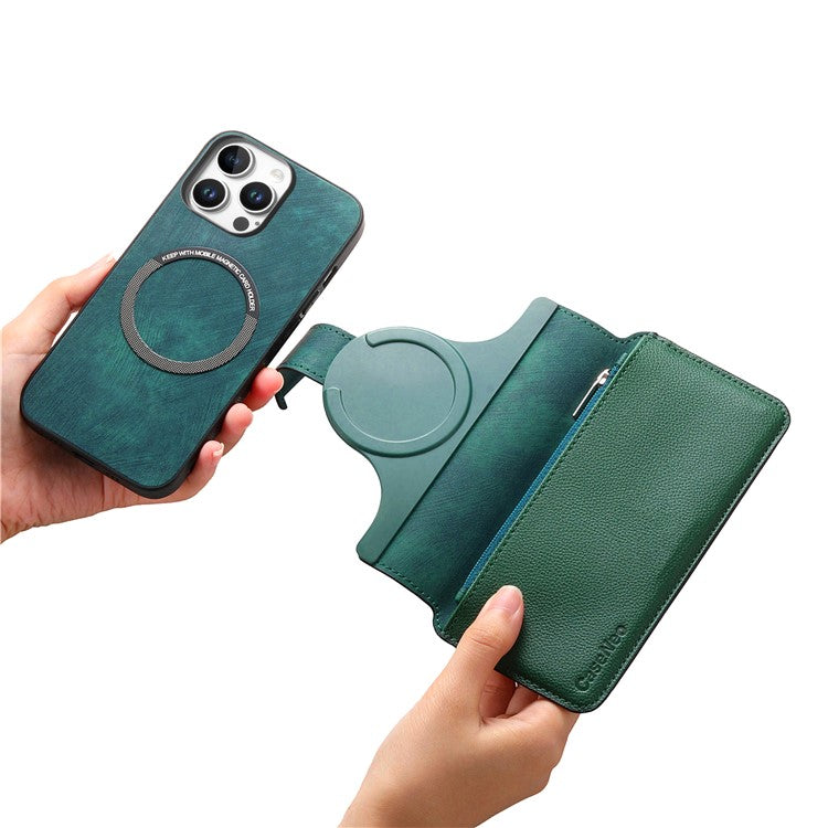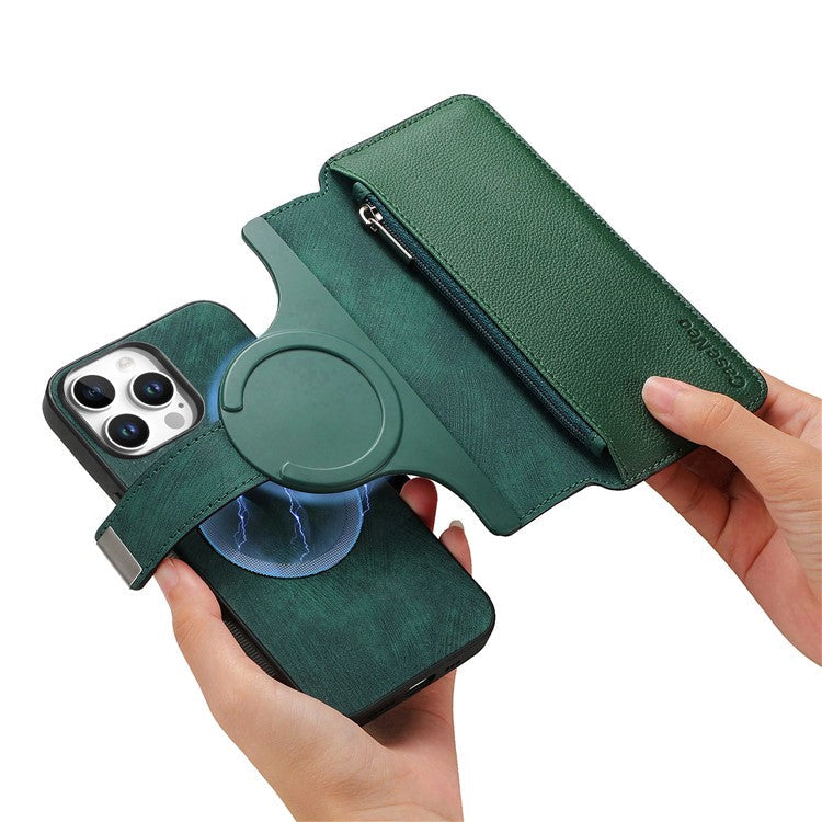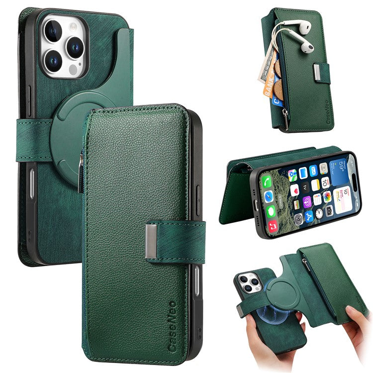 CASENEO MW-02 For iPhone 16 Pro Leather Case Detachable Magnetic Phone Cover - Green