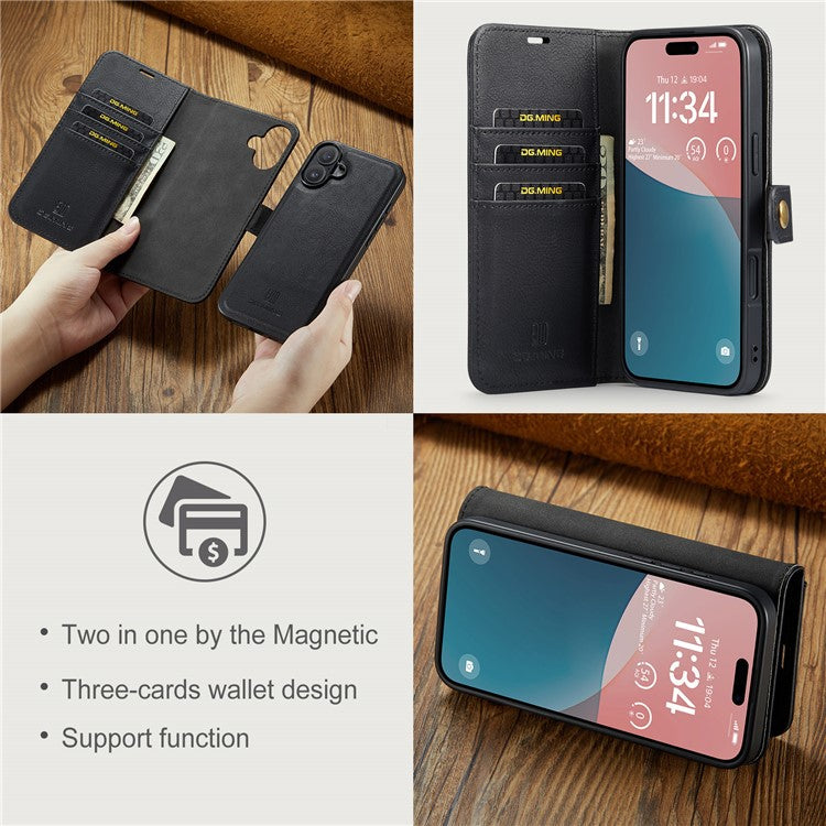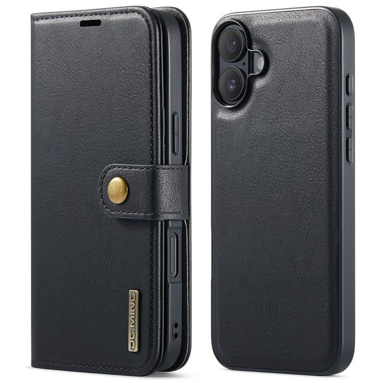 DG.MING for iPhone 16 Plus Case Detachable Split Leather Phone Cover - Black