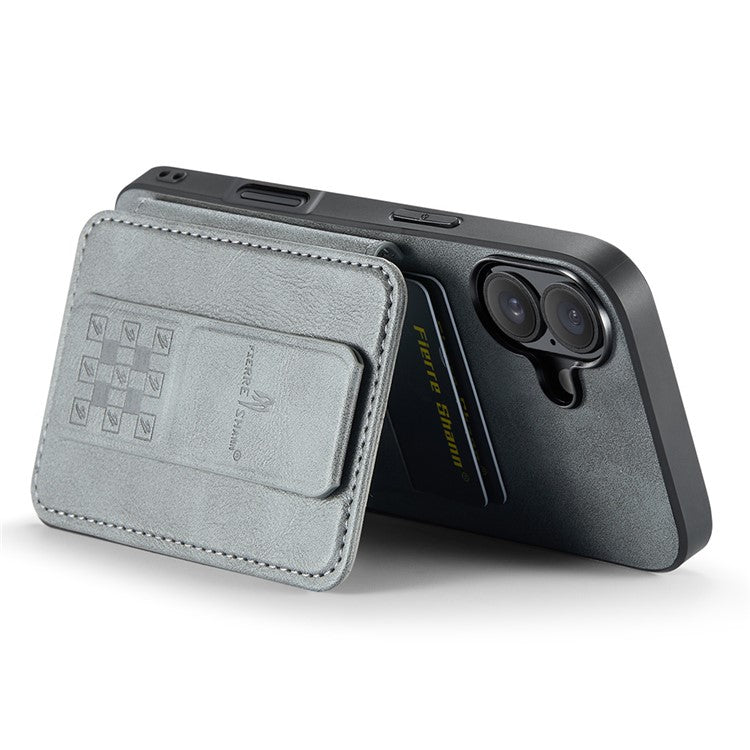FIERRE SHANN 024 Style For iPhone 16 Plus Case Card Holder Kickstand Waxy Texture Leather+TPU Phone Cover - Grey