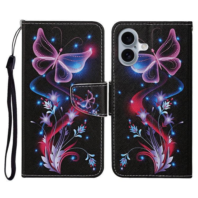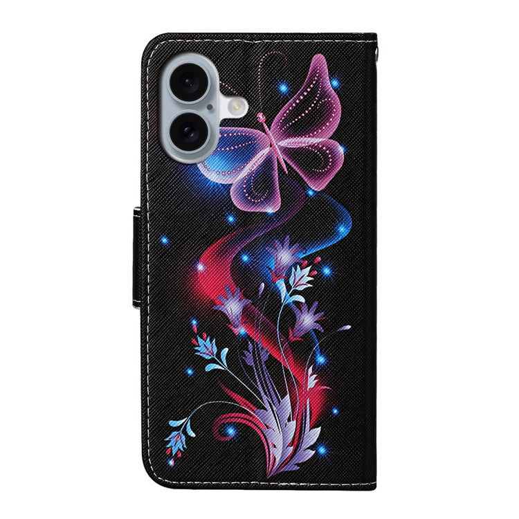 For iPhone 16 Case Pattern Printing Protective Leather Folio Phone Cover - Glowing Butterfly