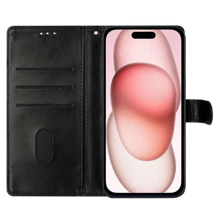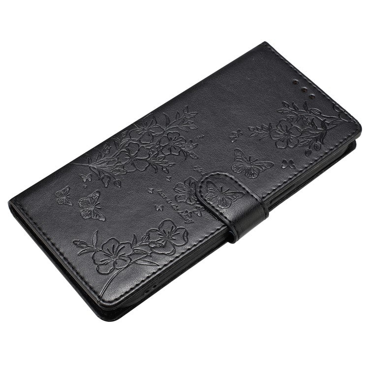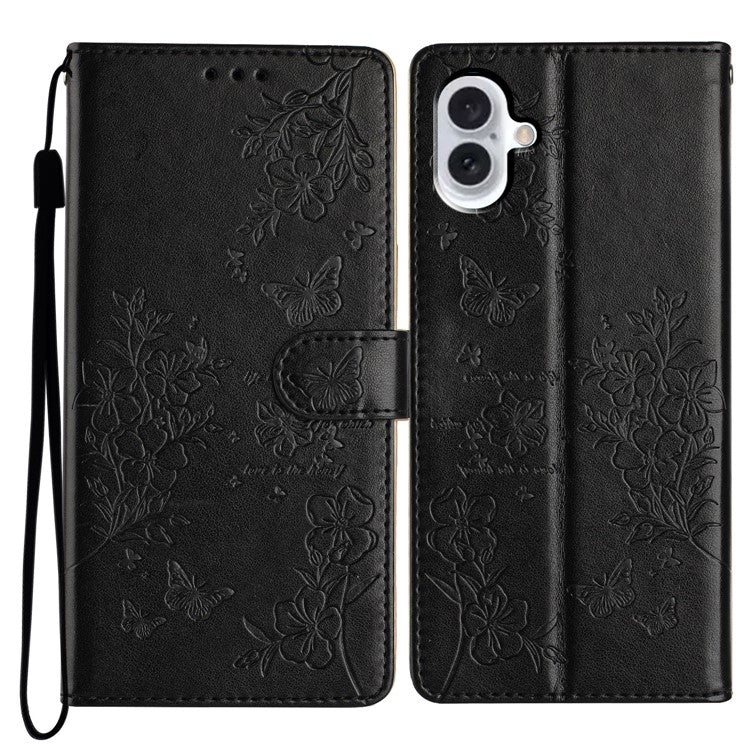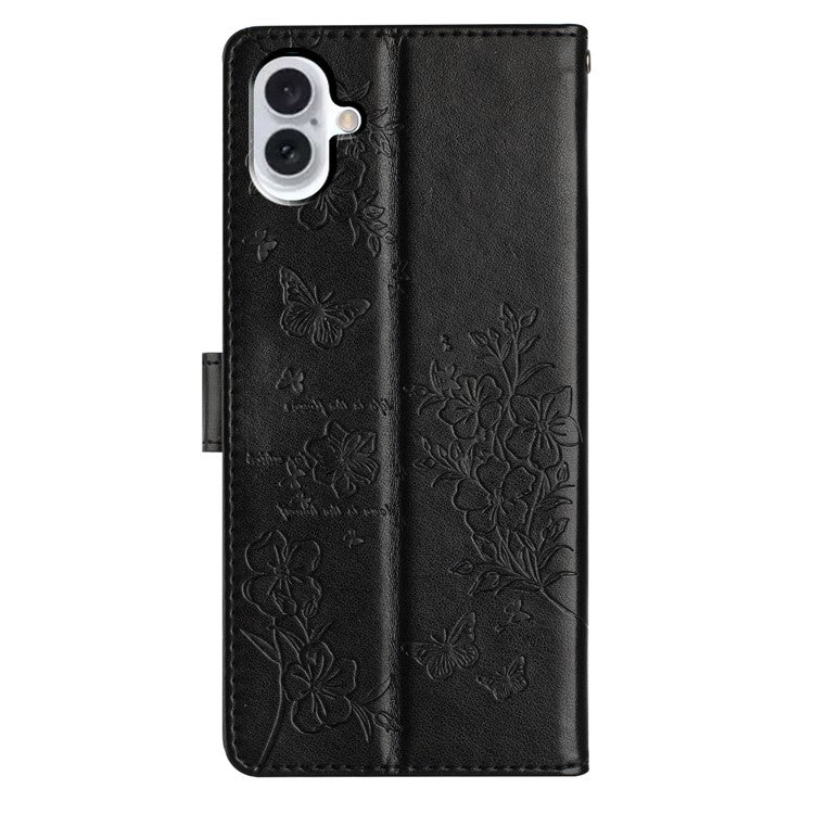For iPhone 16 Plus Case Butterfly Flower Imprint Wallet Leather Phone Cover with Stand - Black