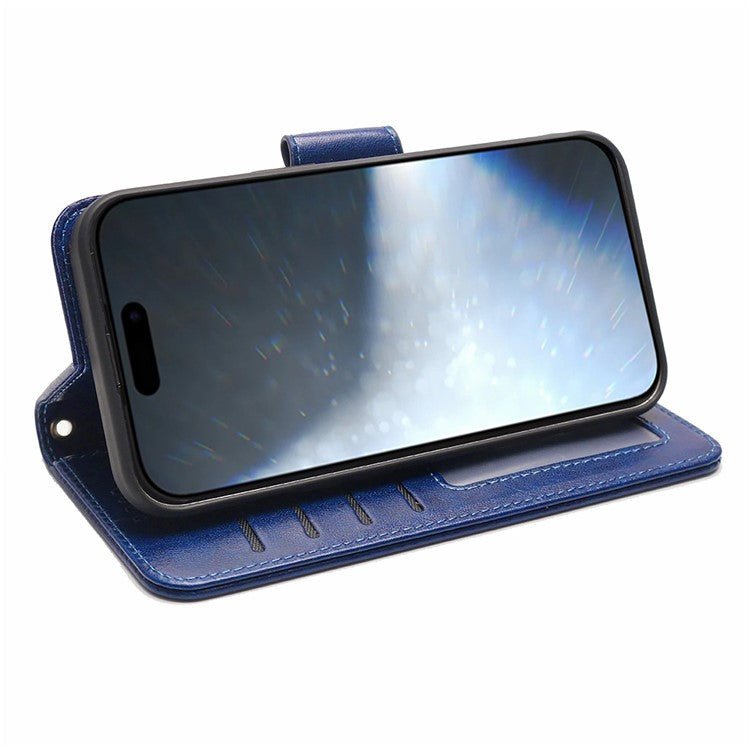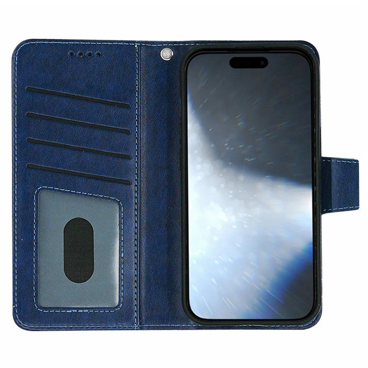 For iPhone 16 Plus Case Card Holder Wallet Leather Phone Cover Stand - Blue