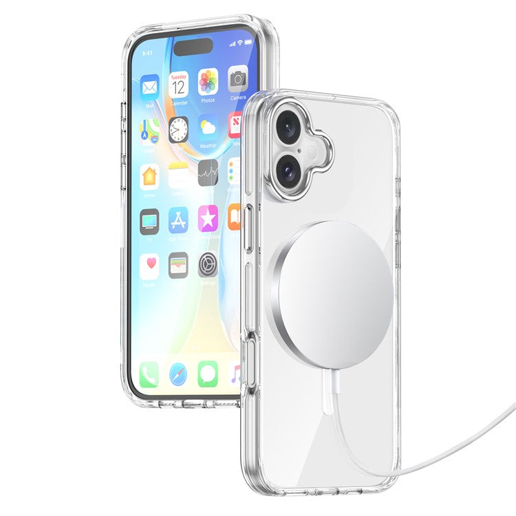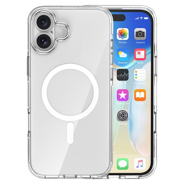 For iPhone 16 Plus Case Compatible with MagSafe Airbag Design PC+TPU Clear Phone Cover