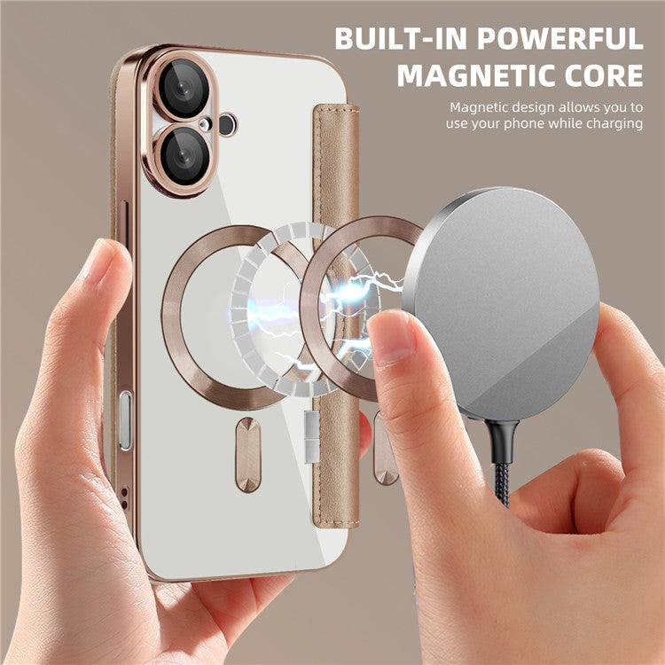 For iPhone 16 Plus Case Compatible with MagSafe RFID Blocking Leather Phone Cover - Gold