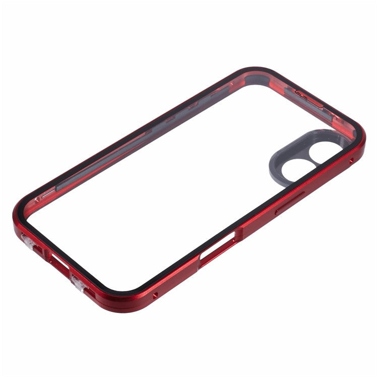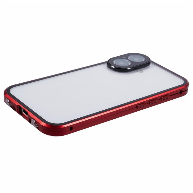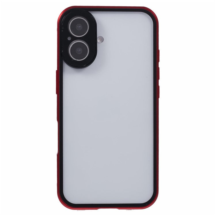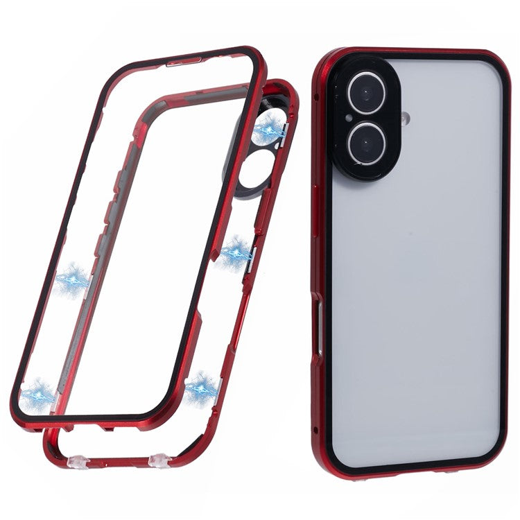 For iPhone 16 Plus Case Magnetic Adsorption Double Sides Tempered Glass+Metal Phone Cover with Buckle - Red