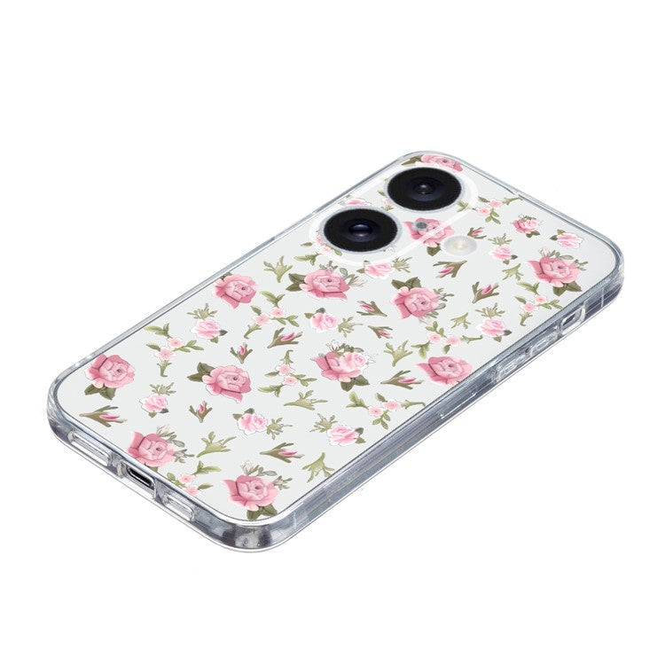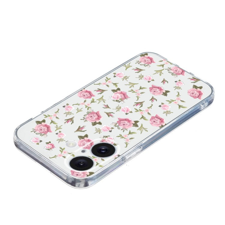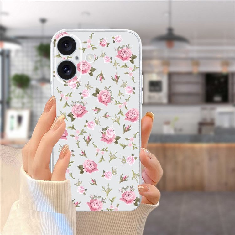 For iPhone 16 Plus Case Pattern Print TPU Protective Phone Cover - Pink Flower