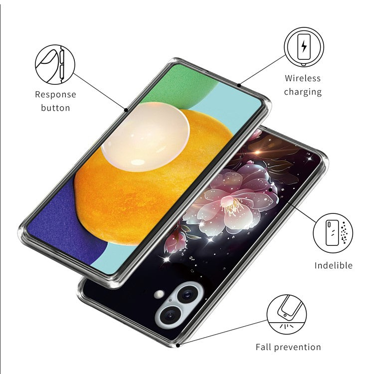 For iPhone 16 Plus Case Pattern Printed Shockproof TPU Phone Cover - Pink Flower