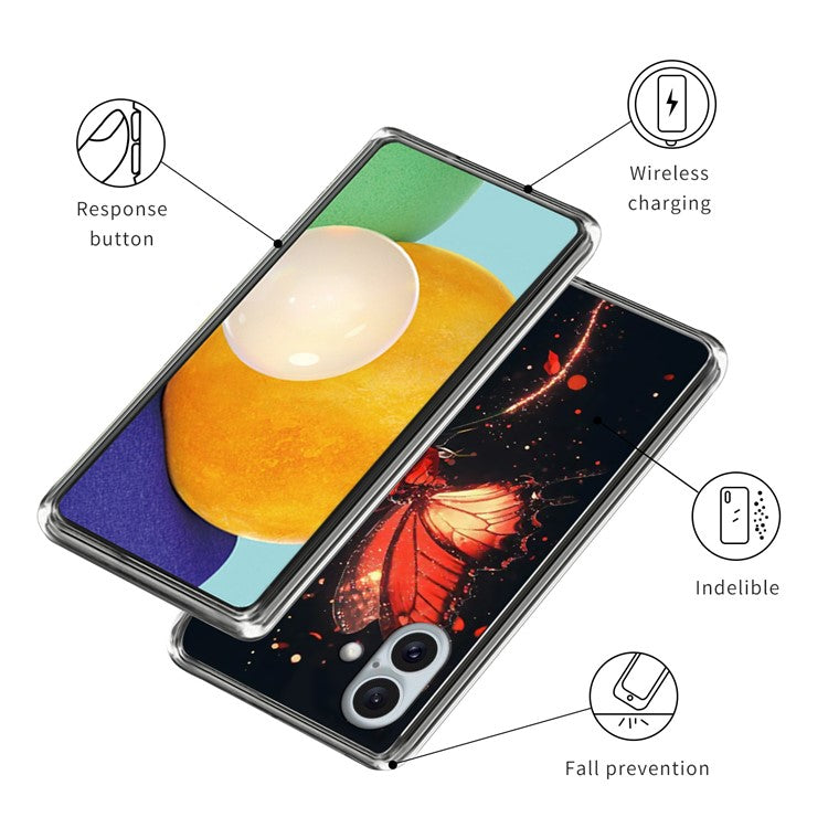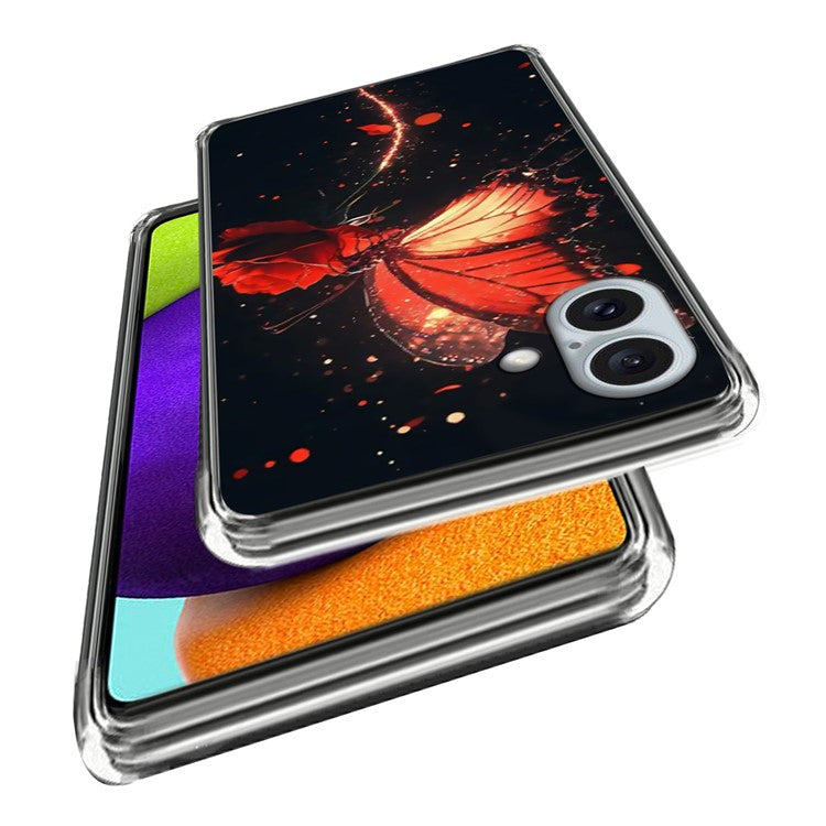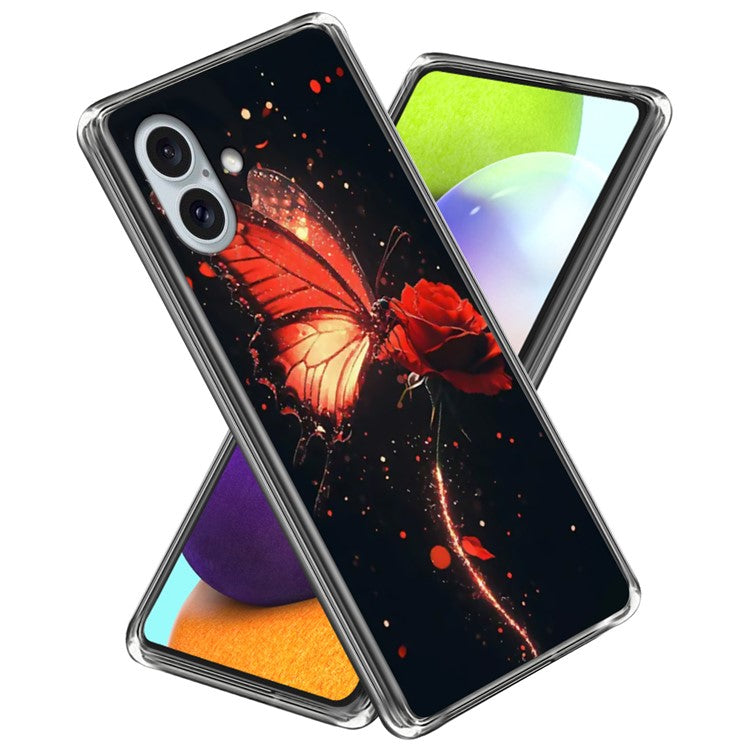 For iPhone 16 Plus Case Pattern Printed Shockproof TPU Phone Cover - Red Butterfly Rose