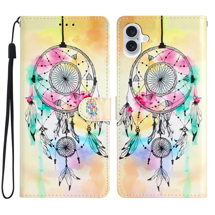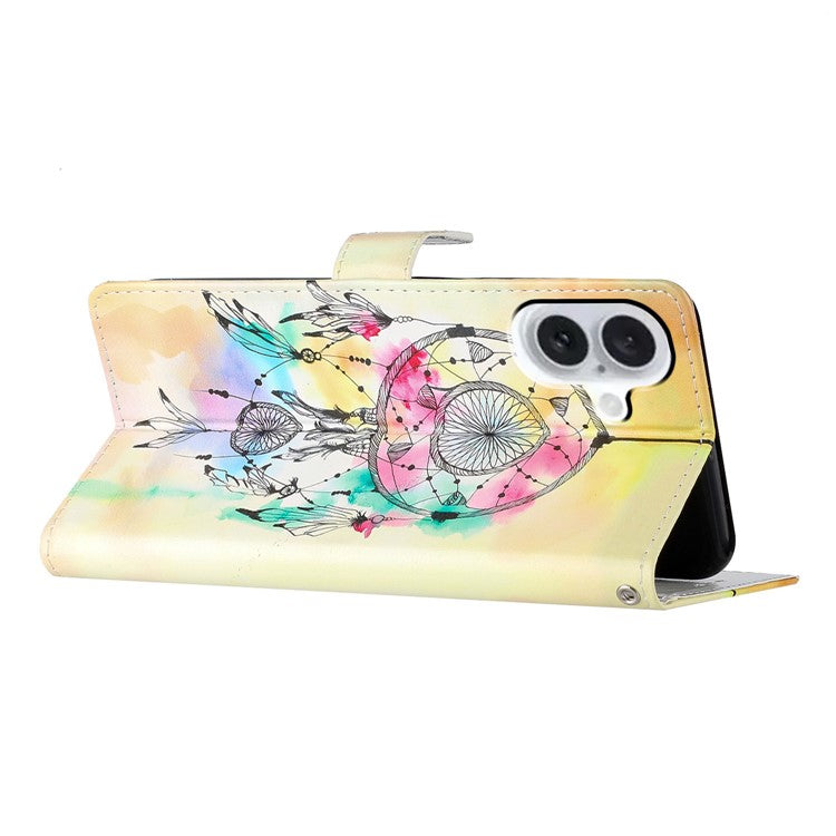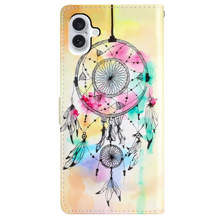 For iPhone 16 Plus Case Print Pattern Design PU Leather Phone Cover with Card Slots Wrist Strap - Wind Chime