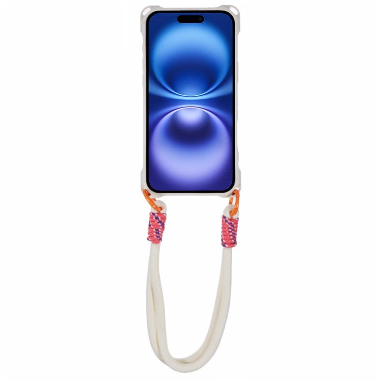 For iPhone 16 Plus Case Reinforced Corner Shockproof TPU Phone Cover with Wrist Strap - White