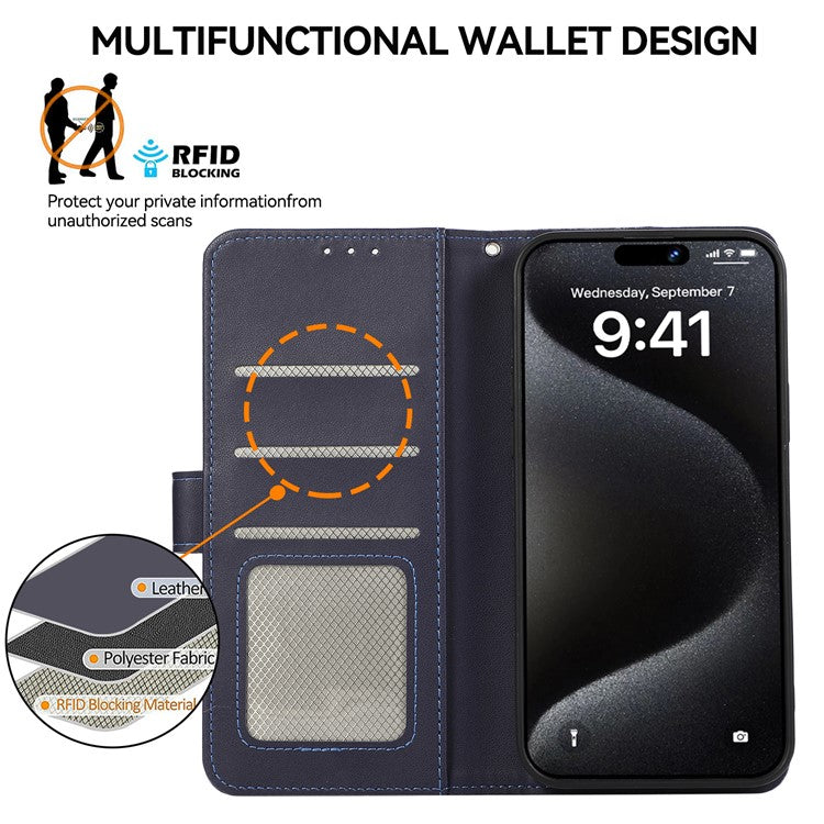 For iPhone 16 Plus Case RFID Blocking Flip Leather Phone Cover - Blue