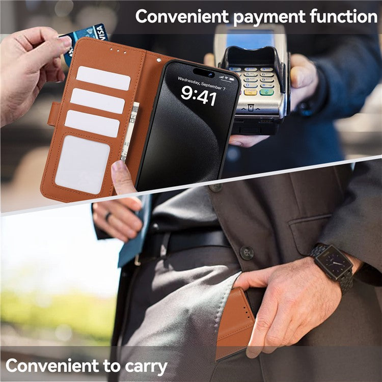 For iPhone 16 Plus Case RFID Blocking Flip Leather Phone Cover - Brown