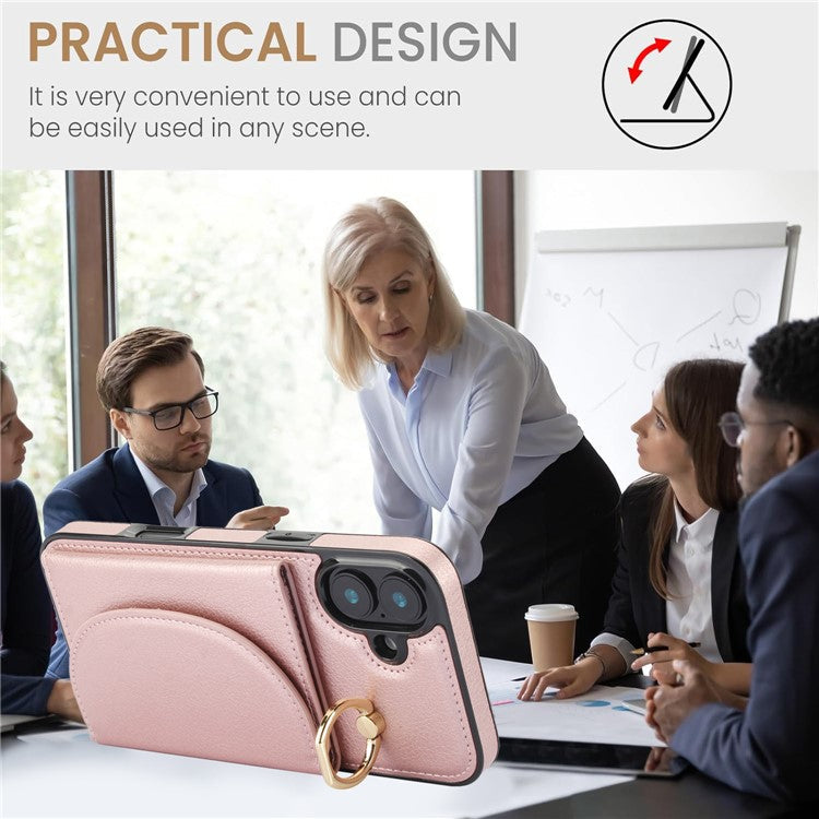 For iPhone 16 Plus Case RFID Blocking Wallet Kickstand Leather + TPU Phone Cover - Rose Gold