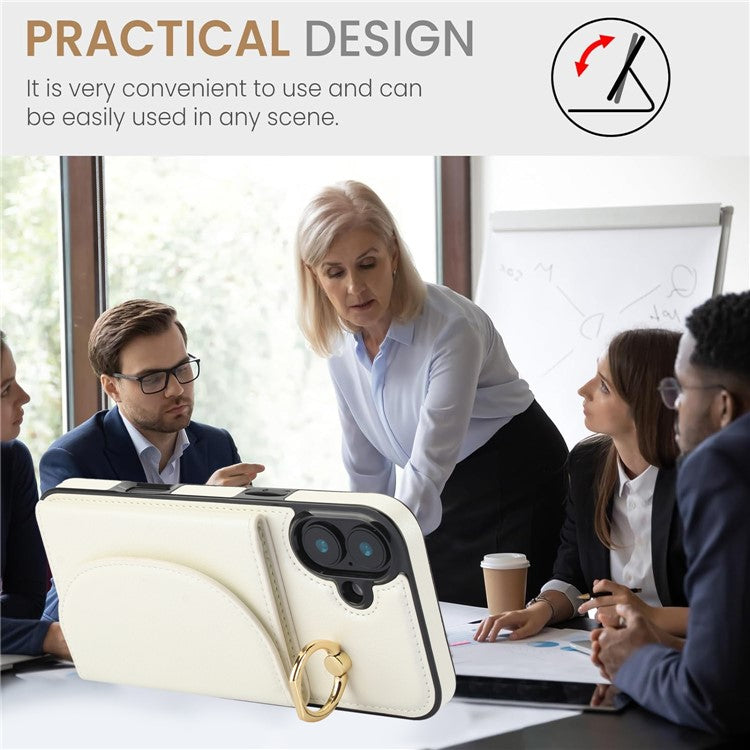 For iPhone 16 Plus Case RFID Blocking Wallet Kickstand Leather + TPU Phone Cover - White