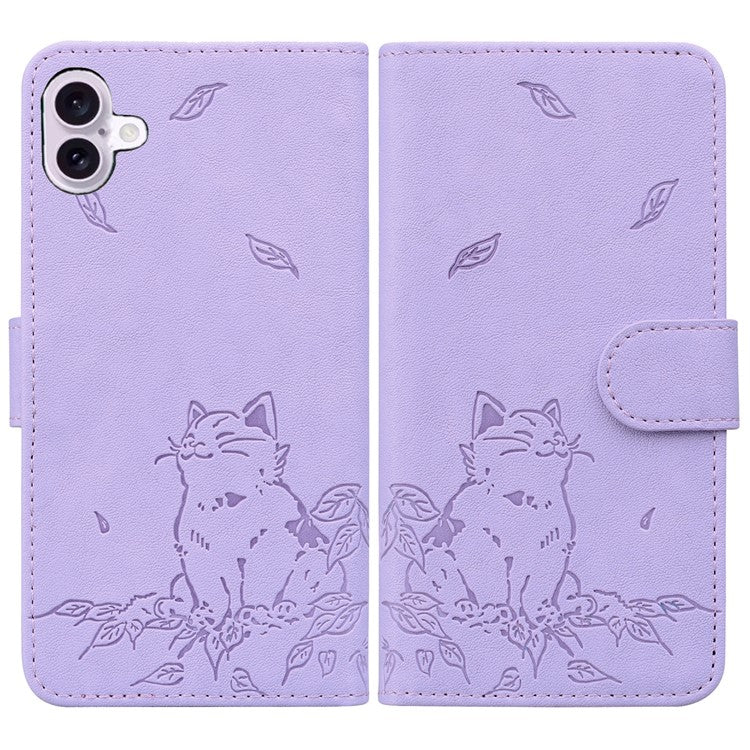 For iPhone 16 Plus Case Wallet Cat Pattern Imprinted Leather Phone Cover - Purple