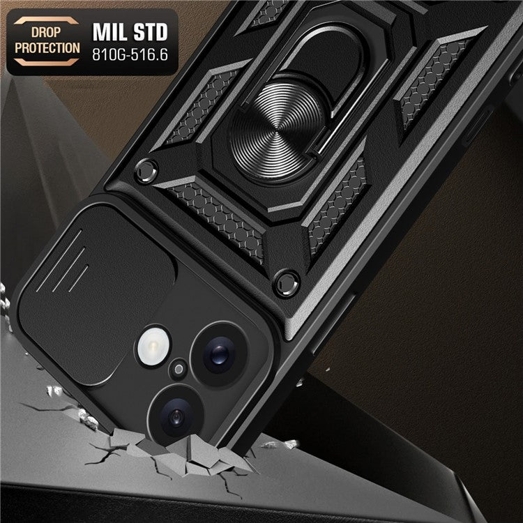 For iPhone 16 Plus Case with Slide Camera Lid PC+TPU Kickstand Phone Cover - Silver