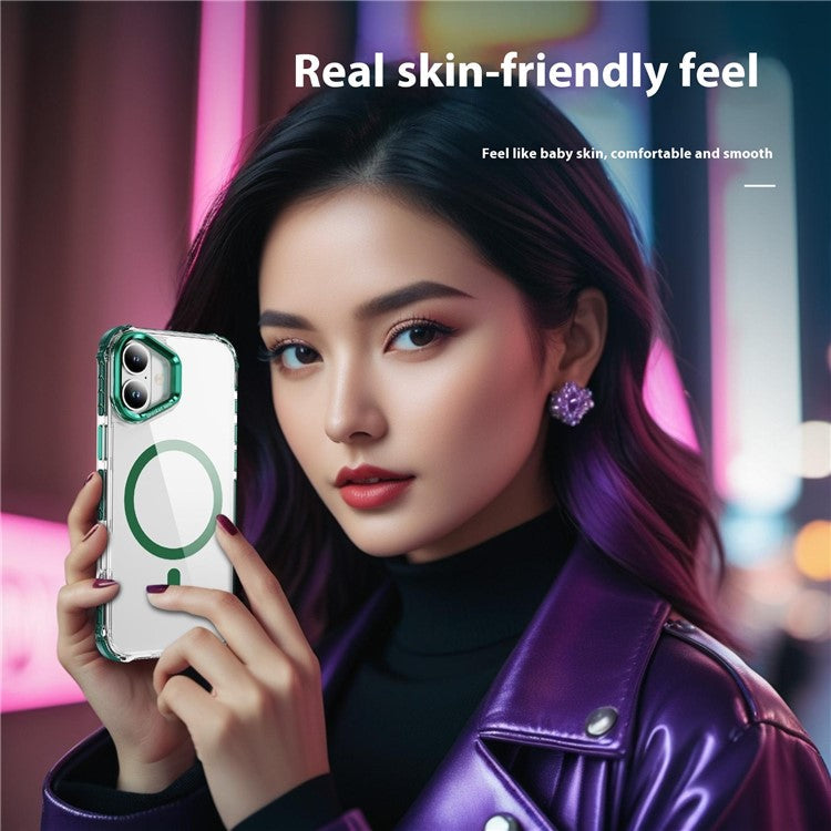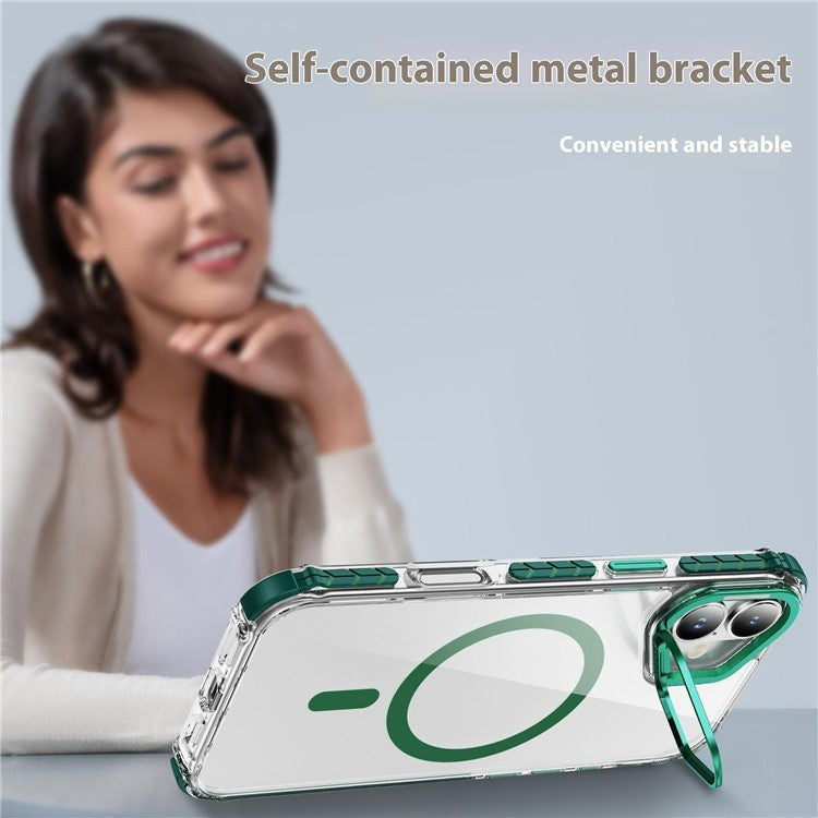 For iPhone 16 Plus Clear Phone Case with Lens Kickstand Cover Compatible with MagSafe - Green
