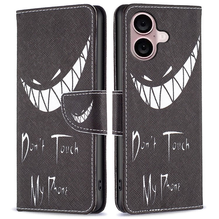 For iPhone 16 Plus Leather Case Pattern Printing Wallet Stand Anti-fall Phone Cover - Don't Touch My Phone