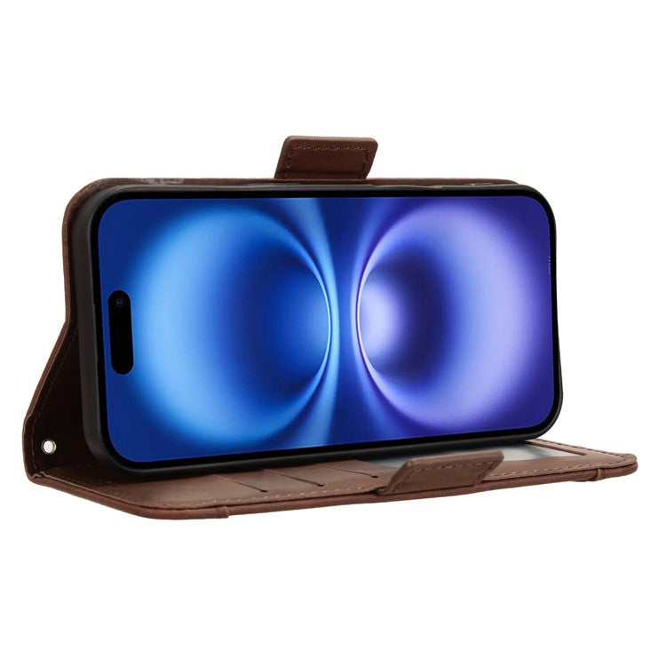 For iPhone 16 Plus Leather Case Phone Wallet Cover with Multiple Card Slots - Brown