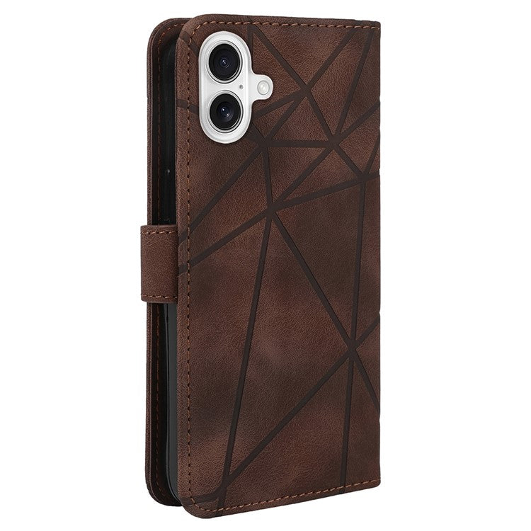 For iPhone 16 Plus Stand Case Line Pattern Leather Phone Cover - Brown
