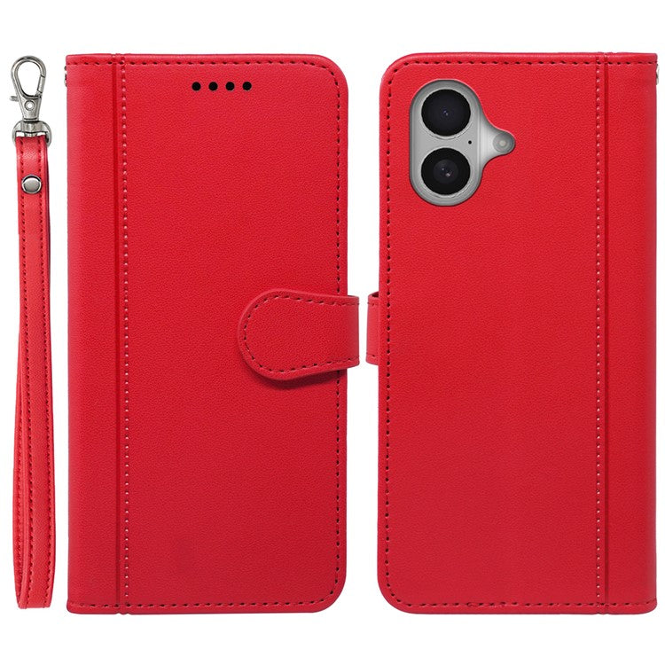 For iPhone 16 Plus Wallet Case Magnetic Snap Leather Phone Cover with Strap - Red