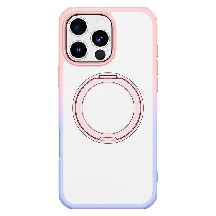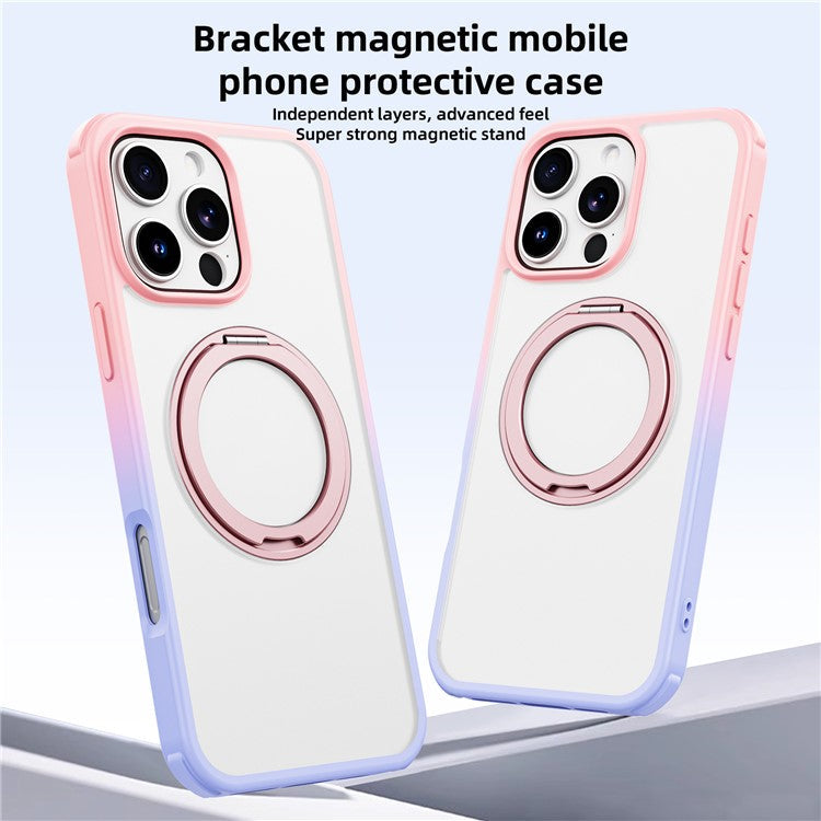 For iPhone 16 Pro Case Compatible with MagSafe Ring Kickstand TPU+PC Back Cover - Gradient Pink Purple