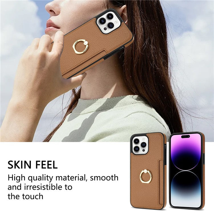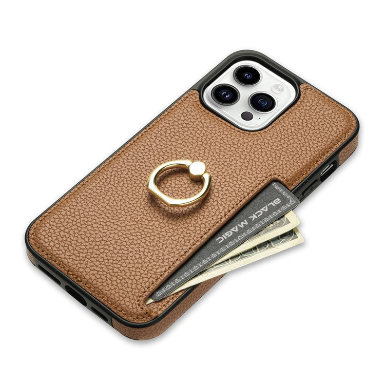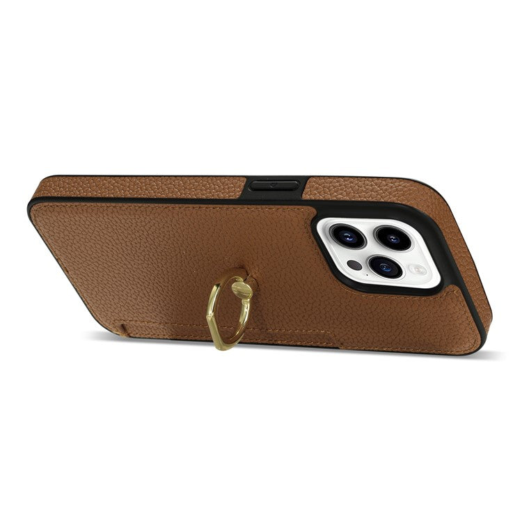 For iPhone 16 Pro Case PU Leather + TPU Card Holder Phone Cover with Kickstand - Brown