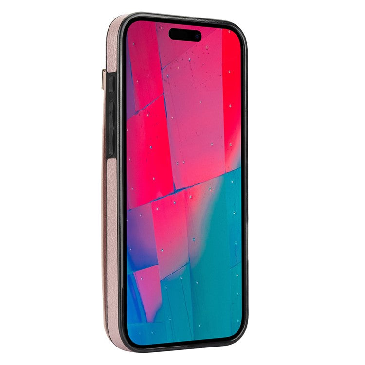 For iPhone 16 Pro Case TPU+PU Leather Hardware Decor Phone Cover with Card Holder - Rose Gold