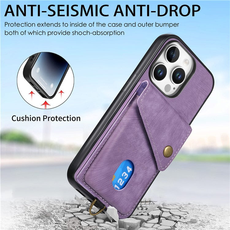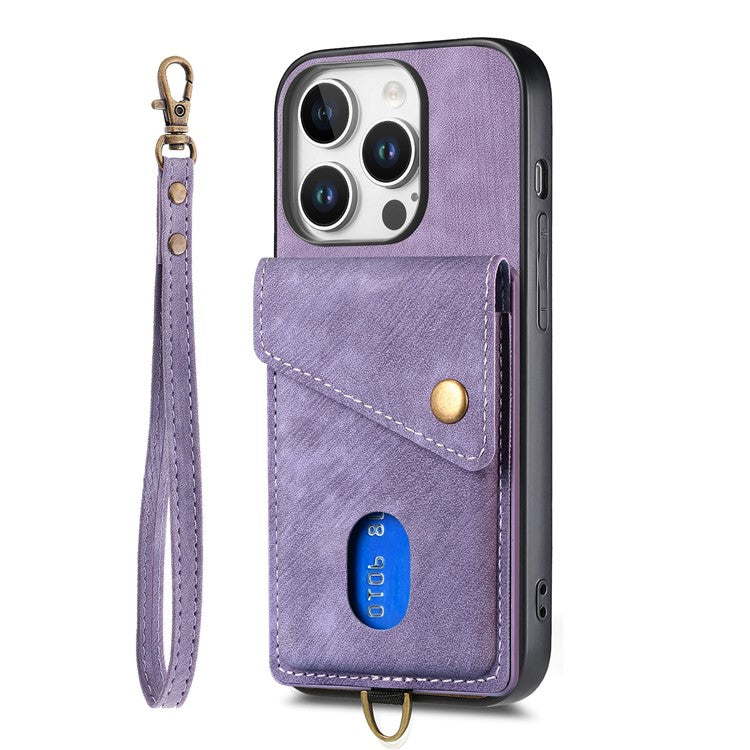 For iPhone 16 Pro Case with Card Slot Kickstand Leather TPU Phone Cover - Purple