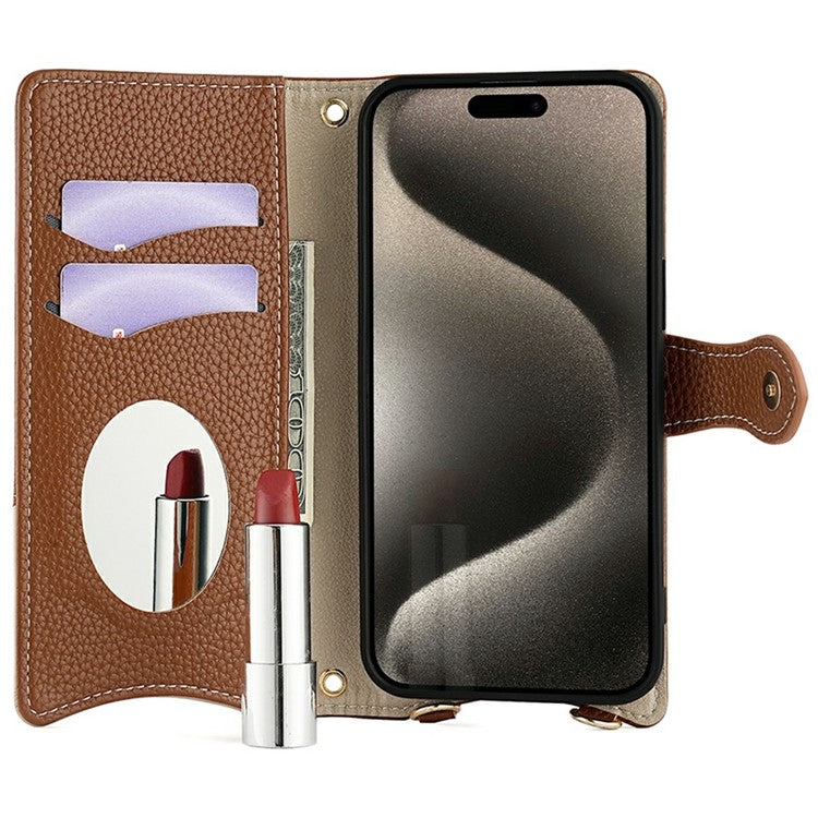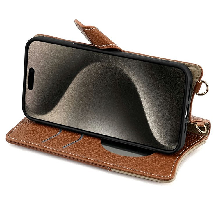 For iPhone 16 Pro Leather Case Wallet Stand Cover Irregular Tail Style with Chain Strap - Brown