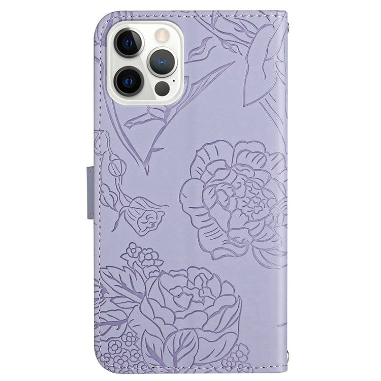 HT03 For iPhone 16 Pro Case Butterfly Flower Imprinted PU Leather Phone Cover - Purple