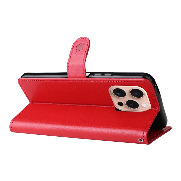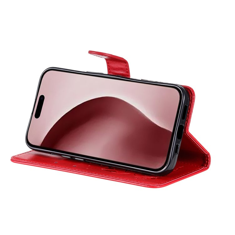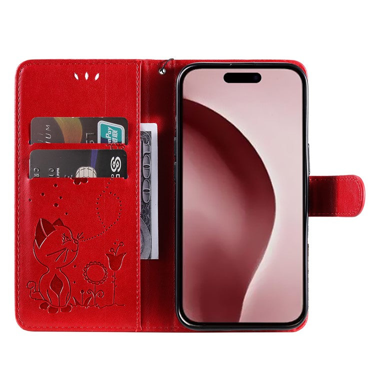 KT Imprinting Flower Series-4 For iPhone 16 Pro Case PU Leather Cat Bee Pattern Phone Cover - Red